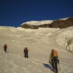 05:15 Uhr in der Frühe brachen wir auf. Es war noch finstere Nacht und die Stirnlampen der Seilschaften sahen aus wie Lichterketten, welche sich raupenförmig den Berg hinaufkämpften.