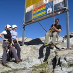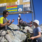 Sicherlich war es keine sportliche Leistung mit der Gondelbahn auf die Längfluh zu fahren, doch den Nachmittag wollten wir mit Ausbildung und Repetitionen verbringen. Spaltenrettung, Knüppeltraining, Verhaltensregeln, usw. standen auf dem Programm. Erst als sich alle sicher fühlten, gab es das verdiente Bier auf der Hüttenterrasse. Bei milden Temperaturen und Sonnenschein konnten wir die tolle Bergkulisse bewundern.