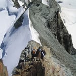 Der Alphubel ist ein Berg mit zwei sehr verschiedenen Gesichtern. Von Osten ein riesiger, auf den ersten Blick etwas langweiliger Schneebuckel, von Westen ein schroffer Felsberg mit Wänden und Gratpfeilern. Aber beim näheren Hinsehen sieht auch die zuerst simpel wirkende Ostseite gar nicht mehr so ganz harmlos aus. Und besonders in den letzten Jahren haben sich die dort im Feegletscher auftuenden Spalten den Bergsteigerkarawanen gelegentlich ganz schön zu schaffen gemacht
