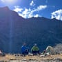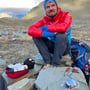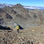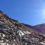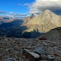 Dieser pustete sich durch Mark und Bein und blies uns fast vom Berg runter. Wir stiegen daher bald wieder ab und genossen die letzten Sonnenstrahlen an einem windgeschützten Ort zwischen grossen Felsblöcken im Schotterhang.