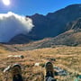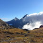 Aber glücklicherweise war unsere heutige Etappe kurz. Gerade mal 600 Höhenmeter. Wer wollte da Gewicht sparen und auf Comfort verzichten? Neben Zelt, Downmatt und Schlafsack hatte ich 3 Liter Wasser und 1 Liter Wein dabei. Zudem ein feines Abendessen und ein Dessert natürlich. Auch an warmen und trockenen Ersatzkleidern sollte es nicht fehlen.