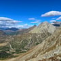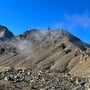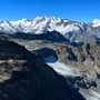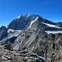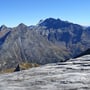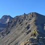 Der Wind zwang uns zum Weitergehen. Dank ihm hatten wir traumhaftes Wetter – aber eben auch kalte Glieder. Einen Blick auf die Südwestflanke zeigte, dass ein Abstieg möglich und vertretbar war. Einige Passagen würden steil sein, aber ein grobes Steinschlagrisiko konnte ausgeschlossen werden.