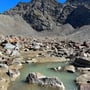 Vorbei am kleinen Gletschersee, wo die Gamsa entsteht, stiegen wir stetig ab. Danach versuchten wir immer der 2'600 Höhenlinie zu folgen und steuerten dabei den Höhenweg bei Lauine unterhalb des Sirwoltuhorns an. Dies gelang uns sehr gut ohne Höhe zu verlieren. Doch der Weg über das weitläufige Geröllfeld war anstrengend.