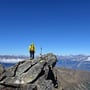 Wir stellten unsere Zelte auf einer flachen Ebene bei Pt. 2411 auf und sortierten unsere Sachen. Dann begaben wir uns auf das 2’623 Meter hohe Wyssbodenhorn. War die Aussicht von dort oben auf den Simplonpass, das Hübschhorn, das vor zwei Wochen bestiegene Breithorn und auf die Sirwoltuseen so schön, aber auch so grausig kalt und stürmisch der Wind, der uns um die Ohren blies.