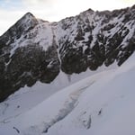 Es war stockdunkel und nur ein paar einzelne Sterne schimmerten durch die dünne Wolkendecke. Wir stiegen vor bis zum Felssporn auf 3400 m. Hier montierten wir die Steigeisen und seilten uns an. Immer aufwärts auf dem Gletscher ging es in Richtung des Festijochgrates. Doch kletterten wir noch im Dunkeln bis auf das 3723m hohe Joch.