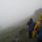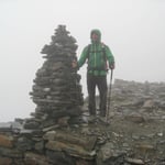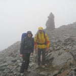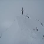 Um 09:00 Uhr standen wir nach 6 Stunden Aufstieg on the top of Switzerland! Sichtweite etwa 5 m und starker Wind, der einen fast wegblies. Noch vor einer Stunde war hier Sonne :-( Doch wir waren sehr zufrieden, hatten wir doch noch mit viel schlechteren Verhältnissen gerechnet. Zwei, drei Fotos, kurz etwas trinken uns so schnell wie möglich wieder runter. Pause würden wir später machen.