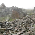Die Nacht war kurz. Alle Berggänger hofften auf gutes, trockenes Wetter. Um 02:00 Uhr war allgemeine Tagwache. Draussen war es nebelig und man konnte die Toilette von der Hütte aus gar nicht erkennen. Doch ein Blick auf den aktuellen Wetterbericht liess Gutes hoffen. Um 03:00 Uhr starteten wir schliesslich mit vier anderen Seilschaften. Nur im Licht der Stirnlampen suchten wir den Weg über die schotterige Gletscherzunge des Festigletschers.