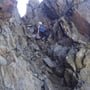 Hier wurde die Kraxlerei endlich interessanter. Teilweise T5, grösstenteils jedoch im T4 Gelände mit einigen Kletterstellen die hinauf oder hinunter geklettert werden mussten (WS; mehrere Stellen I/II). Man konnte sich den Schwierigkeitsgrad meist selbst aussuchen und bei Bedarf die Hindernisse umgehen.