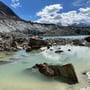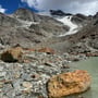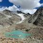 An den faszinierenden Grüebu-Seen fanden wir den perfekten Platz für eine Rast (15:30 Uhr). Die Füsse konnten im Gletscherwasser abgekühlt werden und auf den grossen Felsbrocken fanden wir Platz, um uns mal in der Sonne hinzuliegen und uns vom anstrengendsten Teil der Tour zu erholen.