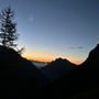 Unterhalb des Bodmerhorns wurde es langsam Tag und die blaue Stunde begann. In dieser Zeit war das Bergpanorama besonders schön und entschädigte die Mühen des permanent steilen Aufstiegs.