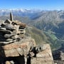Vorbei an Pt. 2568, Pt. 2818 und Pt. 3211, erreichten wir schliesslich den markanten Steinmann bei Pt. 3332, wo die Aufstiegsroute vom Bivacco de Zen, welche über den Rossbodengletscher führt, mit der Breitloibroute zusammentrifft (10:10 Uhr).