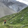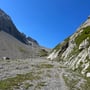In der sommerlichen Hitze, welche selbst hier oben zu spüren war, schritten wir weiter, passierten unauffällig die Wildhornhütte des SAC und stiegen wenig später die Moräne hoch in Richtung Pt. 2543. Dort verliessen wir den Wanderweg und peilten die steinerne Hochebene rund um den Dürrsee an.