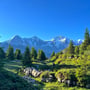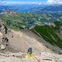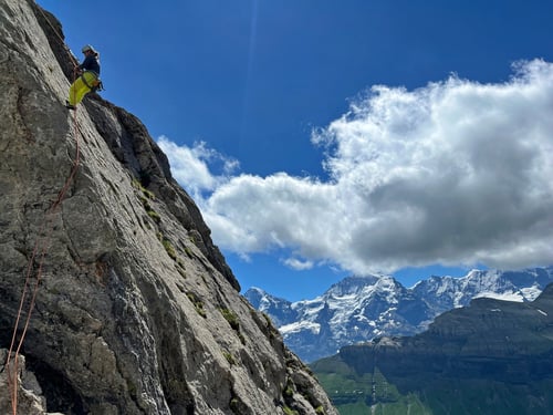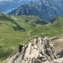 Von hier oben kann man die faszinierende Dolomitenformationen nochmals zusammen mit Eiger, Mönch und Jungfrau bestaunen und den Seilschaften bei ihrem Auf- und Abstieg in aller Ruhe zuschauen.