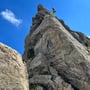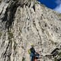 Als erster Part, galt es in sechs Seillängen die sogenannte Zipfelmütze zu erklimmen (3c, 4b, 4b, 4c, 4b, 2b). Dahinter wird dann in zweimal in eine Scharte abgeseilt. Vor allem die dritte und die vierte Seillänge sind sehr schön zu klettern und der Weg bis zur Zipfelmütze sehr abwechslungsreich.