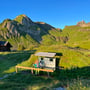 Bei der Lobhornhütte ist alles sehr ursprünglich; und das meine ich im positiven Sinne. Das Plumpsklo ist ausserhalb der Hütte und auch gewaschen wir entweder im Brunnen oder an einem Waschtrog draussen.