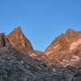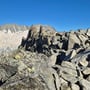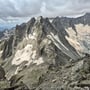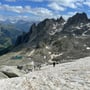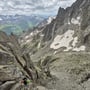 Der Abstieg erfolgte über den Westgrat hinunter zur Winterlücke (Pt. 2852). Der erste Abschnitt erforderte einen steilen Abstieg durch ein Geröllcouloir. An der einen und anderen Stelle findet man noch Prusikschlingen, an denen man bei Restschnee über die heikelsten Passagen abseilen könnte.