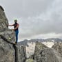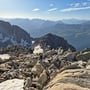 Nun startete die anfangs einfache Kraxlerei über den Ostgrat des Lochbergs, welcher bis zum Gipfelkreuz bei Pt. 3040 keine wirklichen Schwierigkeiten darstellte (WS, II) und deren Wegführung mit vereinzelten Steinmännchen markiert war.