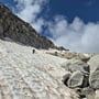 Es blieb uns nichts weiter übrig als umzudrehen und den gegangenen Ostgrat wieder runter zu kraxeln. Doch so schnell gaben wir uns nicht geschlagen. Etwas südöstlich des Pt. 2946 traversierten wir über steiniges Gelände in die Norflanke und strebten eine Moräne an, um auf dieser in Richtung "Rund Firn" entlang der Nordseite des Lochbergs wieder aufzusteigen.