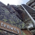Der Hüttenweg ist gut markiert und (fast zu) vorbildlich gesichert. Sogar Eisenleitern wurden verbaut und ein „Strassenschild“ zeigt den Weg zum Berghaus. Nach dem Abendessen ging’s dann schon bald in den komplett vollen Schlafraum. Bei stickiger Luft und heissen Temperaturen wünschten wir uns den Morgen heran. Das Loslaufen musste schnell gehen, denn fast alle Hüttenbesucher hatten das gleiche Ziel ;-)