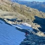 Für den Abstieg hatten wir den WNW-Grat zum Col de Lâne geplant. Dieses Gelände erwies sich aber mangels Firn als sehr instabil und der Wiederaufstieg zum Gratturm bei Pt 3'506 sah äusserst brüchig aus.