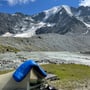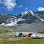 Je näher wir dem Fusse des mächtigen Bergmassives kamen, desto besser wurde das Wetter. In der Nähe des Gletschersees bei Pt 2'662 richteten wir in einer traumhaften Umgebung unser Basecamp ein.
