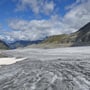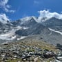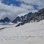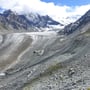 Auf ca. 2'750m endete die Spaltenzone, wir seilten aus und verabschiedeten uns von den zwei französischsprachigen Kameraden. Der Weiterweg über den flachen und aperen Gletscher zog sich in die Länge und auf der Höhe der Panossière-Hütte (ca. 2'450m) wechselten wir in die Flanke der Moräne, um in der Nähe von Pt 2'491 erstaunlich einfach den Moränenrücken zu erklettern.