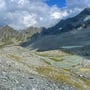 Jetzt hoch zum Col des Avouillons 2'649 und auf der anderen Seite auf dem in der Karte noch teilweise eingezeichneten, ehemaligen Wanderweg in Richtung Pt 2'439 absteigen. Auf der grossen Moräne stiegen wir wieder hoch und traversierten zum See bei 2'662m und waren kurz danach zurück bei unseren Zelten.