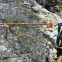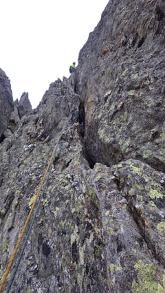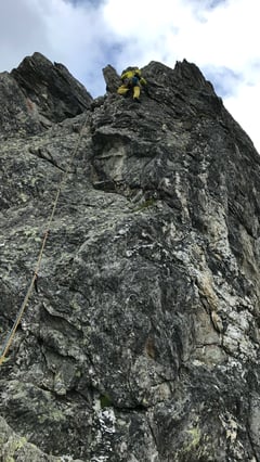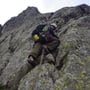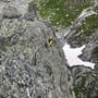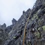 Die Route bestand aus 10 Seillängen (5b, 5b+, 4c, 5b, 4c, 5a, 4c, 5c, 3c, 3b) in bestem Gneis und war klassisch abgesichert, was heisst, dass ab und zu ein Friend oder Keil zum Einsatz kam. Doch der Fels war derart gutmütig, dass sich immer ein Briefkasten, Zacken oder eine Leiste finden liess.
