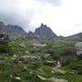 Die Blicke in alle vier Himmelsrichtungen zeigten dasselbe Bild. Definitiv kein sommerliches Kletterwetter. Doch wir waren nun mal hier und die Tour geplant und so starteten wir hoch zum vorgesetzten Felsbuckel des Pizzo del Prévat.