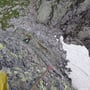 Die verschiedenen Gesteine des Pizzo del Prévat waren faszinierend. So gab es hier Aufschlüsse von weissem Zuckerdolomit und dolomitischem Marmor der Trias. Diese speziellen Gesteinsarten hinterliessen im Verlauf der Jahre ganz feinen Sand. Teilweise kamen wir uns vor wie in der Wüste oder am Strand.