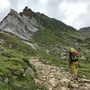 Danach waren wir gestärkt für den Tag und abmarschbereit. Doch das Wetter bereitete uns Sorgen. Waren für heute doch 13 Stunden Sonnenschein vorausgesagt, jedoch über der Hütte eine dicke, schwarze Wolkendecke, von welcher es feucht niederrieselte. Was machen?