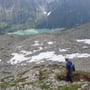 Trotz richtiger Entscheidung seilten wir uns anschliessend verärgert und enttäuscht zum Einstieg ab. Wieder das Schneefeld überquerend, stiegen wir anschliessend die Moräne runter bis auf Höhe des Bergseeschijen.