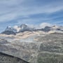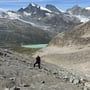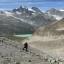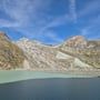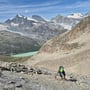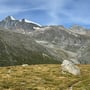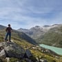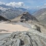 Nach einer Rast mit anschliessendem Schläfchen in der wärmenden Sonne oberhalb des Mattmarksees, stiegen wir weiter ab in Richtung des offiziellen Wanderwegs am Stausee. Dies immer mit einer herrlichen Aussicht auf die Gletscherlandschaft vor unserer Nase.