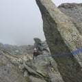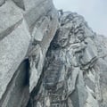 Das Couloir erreicht, folgten wir der sehr schuttigen Schneise hoch bis zum Grat. Glücklicherweise gibt es ab und zu ein paar Stangen und Muniringe, wo gesichert werden kann. Hier lag so viel loses Material herum, dass wir wirklich vorsichtig hinaufklettern mussten. Zum Glück waren wir alleine unterwegs - mehrere Seilschaften verträgt diese Stelle nicht.