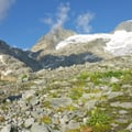 Hier gönnten wir uns dann auch eine kurze Essenspause und dankend kam auch die Sonne wieder hinter den Wolken hervor. Der Abstieg in den Kessel des Gletschhorns/Winterstock ist sehr schön und bietet wilde, raue Natur.