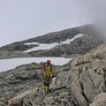 Auf dem Gipfelplateau hinauf zur höchsten Stelle des Tiefenstocks auf 3515m kamen wir aufgrund der Höhe noch ein wenig ins schnaufen. Leider blieb uns die traumhafte Aussicht, u. a. auch auf den Rhonegletscher, verwehrt. Doch dies war im Moment nicht mehr so wichtig, denn es begann zu tröpfeln und wir wollten so schnell als möglich das Couloir hinter uns bringen und wieder den Gletscher unter unseren Füssen haben.