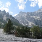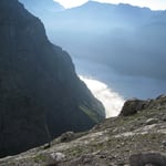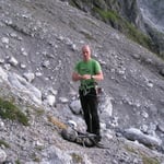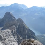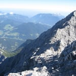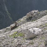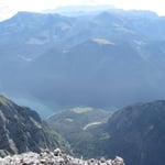 Die Aussicht vom Watzmann war wie immer grandios. Dank dem wolkenfreien Sommerwetter konnten wir in alle Himmelsrichtungen sehen. Nach einer ausgiebigen Pause und dem Läuten der Ostwandglocke am Gipfelkreuz (nur für erfolgreiche Ostwandbegeher), nahmen wir den steilen Abstieg nach Wimbachgries unter die Füsse. Die 2000 Meter, welche wir hochgeklettert sind, mussten nun wieder runtermaschiert werden. Stöcke wären hilfreich gewesen, aber man ist ja ein Mann :-)