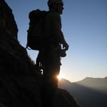 Die Nacht war kurz. Geschlafen hatte ich nicht. Zu sehr war ich aufgeregt, wie die „Grossen“ morgen in die Wand einzusteigen. Schon lange hatte ich dieses kribblige Gefühl vor einer Tour nicht mehr. Um 03:00 Uhr war es dann soweit. Korbi trat ein, das Hüttenlicht erhellte den Raum und der Wasserkocher zischte. Beim Frühstück war es ruhig. Ein Foto des Erstbegehers Johann Grill Kederbacher, welches beim Tisch an der Wand hängte, starte uns an. Er durchstieg die Wand im Jahre 1881 und gab so der Route ihren Namen( Kederbacher Weg). Heute wird dieser Weg sehr selten benutzt, zu schroff ist die Eiskapelle geworden, zudem müssen Schnee bzw. Eisfelder überquert werden, was Steigeisen und Pickel voraussetzt. 90% der Bergsteiger nehmen heute den Berchtesgadener Weg (III), die restlichen versuchen sich am Salzburger Weg (V) oder dem Münchner Weg (IV). Ich entschied mich für den Letzteren. Wenn ich schon einen Bergführer dabei hatte, wollte ich auch ein wenig anspruchsvoller Klettern.