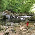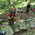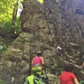 Der Klettergarten Albbruck ist in die Sektoren Erikafels und Wasserschloss aufgeteilt. Da auch die Kinder klettern wollten, suchten wir die Felsen auf, welche in den unteren Schwierigkeitsgraden lagen. Doch erst ganz hinten am Wasserschloss fanden wir freie Routen.