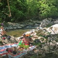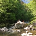 Hier kletterten wir Sixty-four (5a+), Pille-Palle (4a), Rentnerriss (5a) und Eiertanz (5c). Gerne hätte ich noch weitere Seillängen geklettert, doch der Kletterspot war derart überlaufen, dass wir uns fürs Baden und Picknicken entschieden. Denn gleich wenige Meter unter den Felsen befand sich die Alb, ein wildromantischer Fluss.