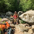 Bei unseren Familienkurzferien über den ersten Mai am Schluchsee im Schwarzwald statteten wir an diesem sommerlichen Sonntag dem Klettergarten Albbruck einen Besuch ab. Ich war gespannt auf den glatt geschliffenen Gneis, welcher in der Kletterliteratur immer wieder gelobt wurde.