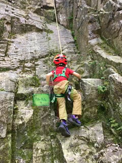 Familienausflug in den Klettergarten Albbruck an der Landesgrenze von Süddeutschland.