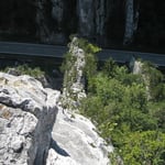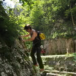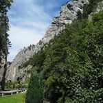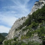 Es ist also der Klassiker schlechthin im Gebiet von Moutier. Schon der Zustieg unterhalb des Bahngeleises und ober halb der Birs versprach Spannung. An diesem heissen Sommernachmittag, stiegen wir also mit genügend Wasser in die luftige Gratschneise aus Kalkstein ein.