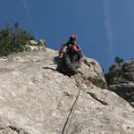 Sobald wir etwas höher auf dem Grat waren luftete es stark. Immer wieder schnellten Windböhen ungebremst auf uns ein. Doch die „einsame“ Kletterei (wir waren tatsächlich alleine unterwegs) bis 5c+ machte unheimlich Spass! Leider waren es nur 9 Seillängen – doch die haben Lust auf noch mehr gemacht!