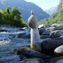 Zurück im Dorfkern von Brontallo belohnten wir uns in der Osteria mit einem Nachmittagsbierchen. Leider war die Bedienung nicht so nett wir der Ort aussah. Doch bald waren wir weiter und hielten unsere Füsse in die Maggia.