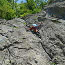 Doch die Attraktivität dieses Felsriegels lag ja unter anderem auch an der sehr guten Erreichbarkeit. Und immerhin… die Routen weisen eine Länge von bis zu 30 Metern auf und die Aussicht auf Klein und Gross Mythen ist phänomenal! Da macht auch ein spontanes Feierabendklettern Spass.