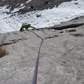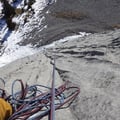 Vor allem die dritte Seillänge hatte es in sich. Waren die Hackenabstände bis zum nächsten Stand doch bis zu sieben Metern voneinander entfernt! Ein Sturz hätte in diesen scharfkantigen Wasserrinnen einige Schürfwunden hervorgebracht!