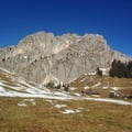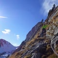Der Abstieg nach Osten auf dem Grasband erfolgte ohne abseilen. Mit dieser "Rundreise" hatten wir eine sehr lohnenswerte Tour ausgesucht. Nach einer Verpflegungspause hatten wir gar keine Ambitionen mehr für die kurzen Sportkletterrouten ausgehend vom Schneefeld der Wandflue.