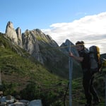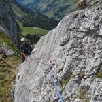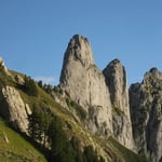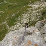 Die Jumelle war ein Prachtsfels, griffig, stabil und schon fast übertrieben gut abgesichert. Doch uns freute das. Los ging es als erstes ohne Schwierigkeiten über die Südwestkannte (5b/5SL) hoch zum Gendarm und dann zum Gipfel. Hier seilten wir uns nach einer kurzen Aussichtspause über die Route „Transsibirien“ ab. Dank den 60 Metern Halbseilen erreichten wir mit nur einem Stopp wieder Boden unter unseren Füssen.