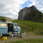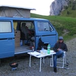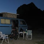 Obwohl es noch immer August war, fiel die Temperatur merklich. Bald verzogen wir uns in den VW-Bus; einzig der Grill mit dem brutzelnden Fleisch blieb draussen. Mit vollen Bäuchen verbrachten wir anschliessend eine angenehme Nacht.